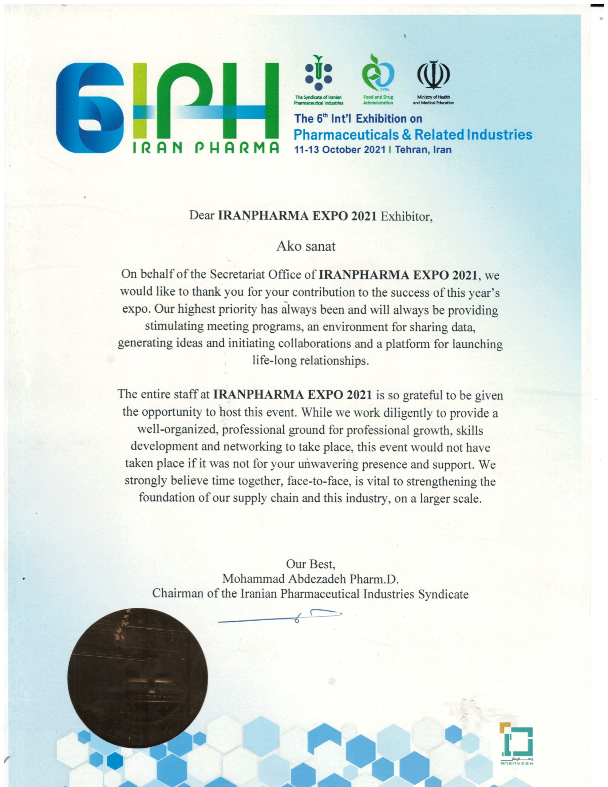 Approximately three years ago, our organization collaborated with Pharmex Moscow to host an exhibition, which stands as a successful experience in international cooperation.